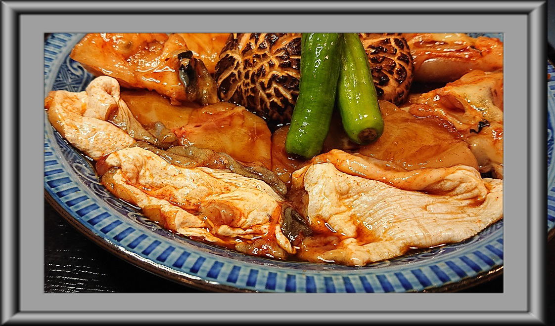 (甘口唐辛子とショウユの焼ける香ばしさにお酒もすすむ・・・